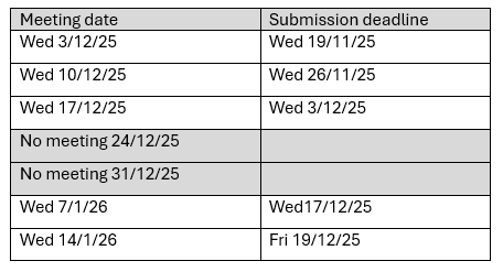 Home / Blog / Company News / 2025-26 Meeting & Submission Dates Our end of year meeting and submission dates are as follows: